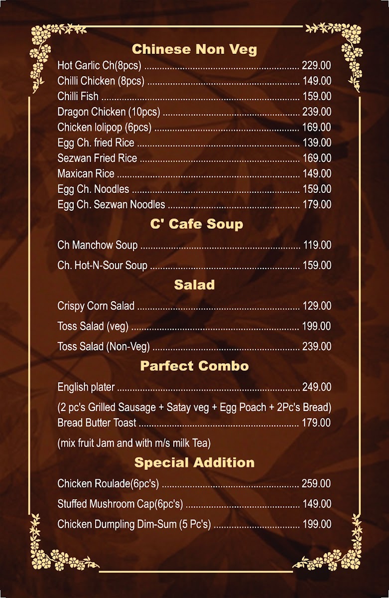 Welcome to C.Cafe - A Chinese Restro Cafe, the hidden gem on Grand Trunk Rd in Bardhaman. This cozy oasis seamlessly blends comfort with culinary delight, offering a diverse menu that caters to all tastes.